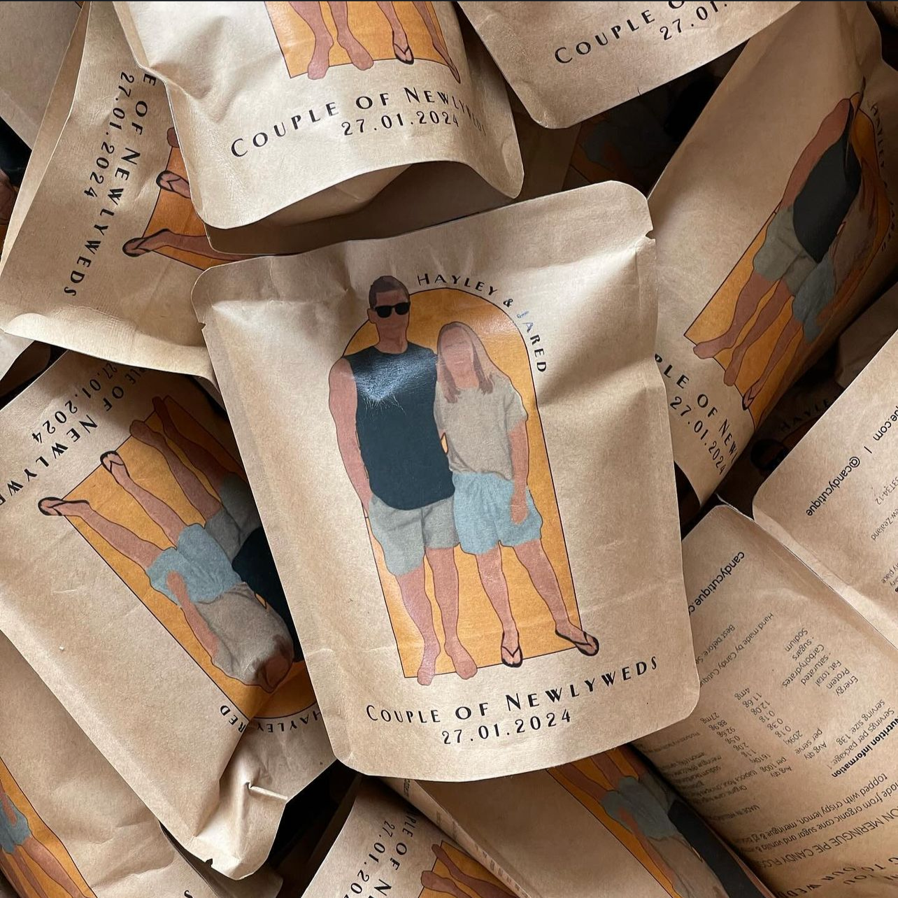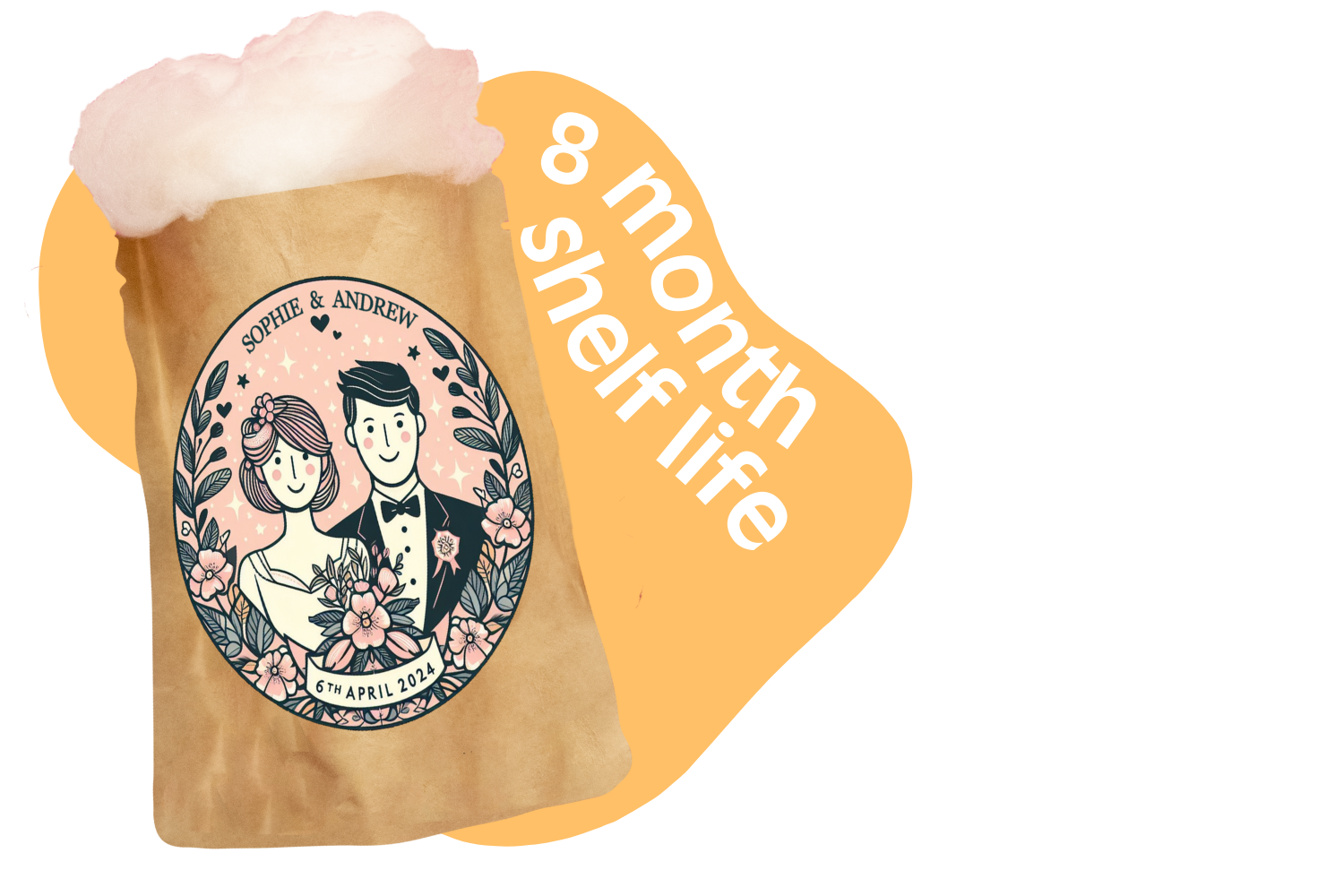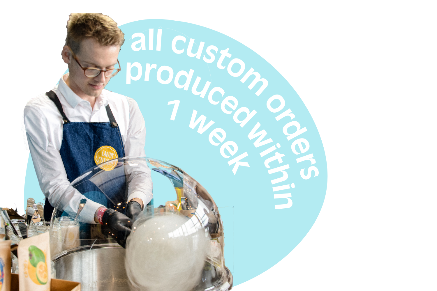 Custom orders are crafted from scratch requiring significant prep, hence moq's. Pricing for customised candy floss is determined by the schedule on the right → more bags, greater discount.