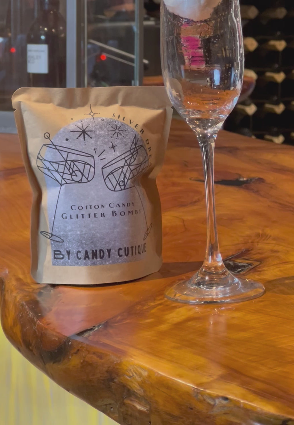 Get ready to add some sparkle to your drink with our hand-spun puffs of cotton candy in glittery silver dream! Just rip, drop, pour, and sip for a touch of magic in every bubbly sip! Each bag contains 2 Glitter Bombs filled with edible glitter, ready to dissolve in your favourite beverage and transform it into a whimsical, sweet delight.
